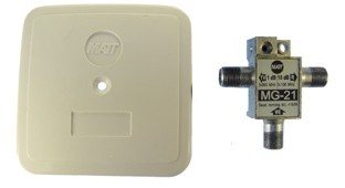 Gniazdo abonenckie MG 21 w miniaturowym korpusie typu rozgałęźnik przeznaczone jest do zakończenia wyprowadzeń abonenckich w antenowych sieciach gwiaździstych (przyłączach równoległych) lub odgałęźnych. Polecane jest zarówno do systemów TV kablowej jak i antenowych instalacji zbiorczych i indywidualnych.