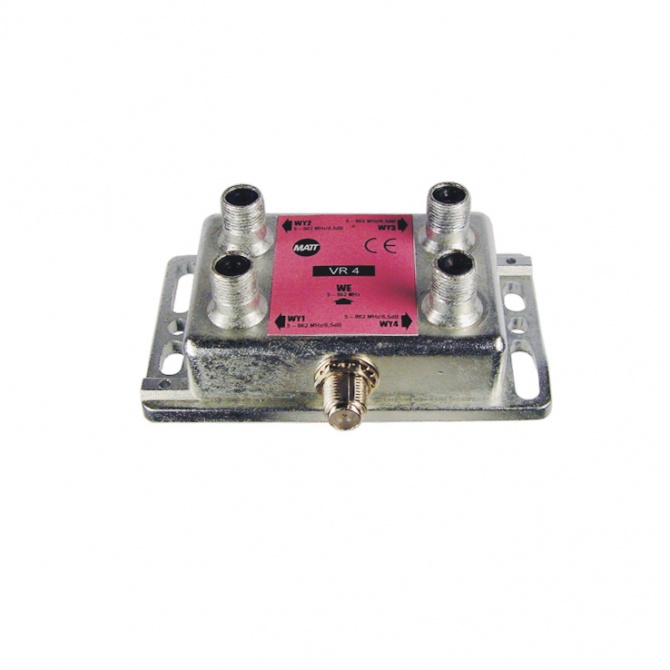 Rozgałęźnik VR 4 jest przeznaczony zarówno do sieci CATV, jak i małych instalacji zbiorczych lub indywidualnych. Charakteryzuje się dużą izolacją między wyjściami i dobrym dopasowaniem. W wykonaniu standardowym posiada blokadę napięcia zasilającego na wejściu do 500V DC.
